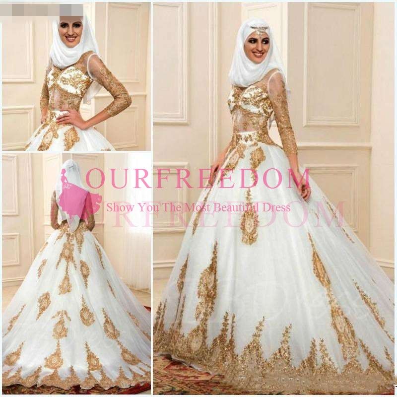 Discount 2019 Newest Muslim Wedding Dresses With Gold Applique