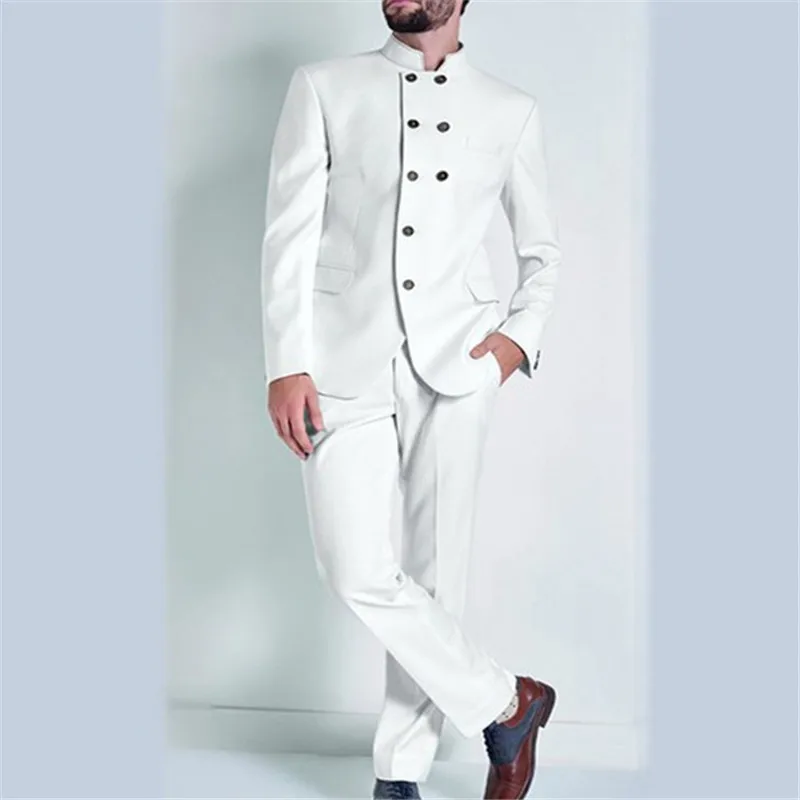 White Groom Men Suit Tuxedo Coat Pant Designs Double Breasted
