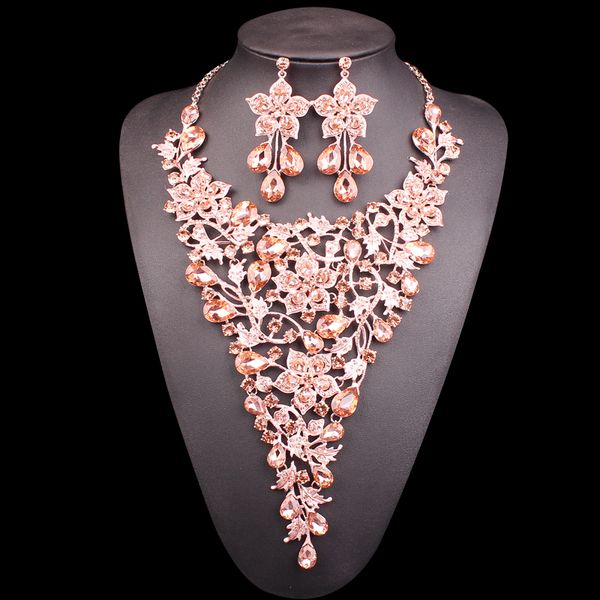 Elegant Big Flower Bridal Jewelry Sets Crystal Statement Necklace