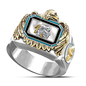 Animal Indian Two Tone 925 Silver Eagle Buffalo Ring Men Wedding