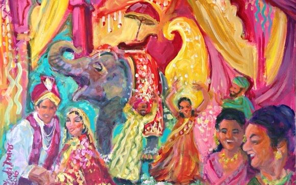 Indian wedding paintings. If you look at most of the traditional indian families that turn up for a wedding they will be carrying gifts like kitchen utensils or some home decor products like photo frames. Indian painting has a very long tradition and history in indian art though because of the climatic conditions very few early examples survive. Indian art ganesh hindu art ganesha tribal art.