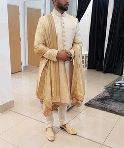 Men Sherwani Designer Indian Asian Wedding Suit Gold Made By