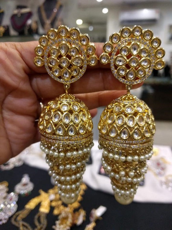 Grand Beautiful Big Jhumkas Earrings With Kundansamerican Etsy