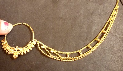 Gold Plated Indian Designer Nose Rings Chain Wedding Bridal