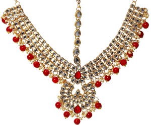 Indian Wedding Bridal Red Pearl Gold Kundan Matha Patti Head Chain
